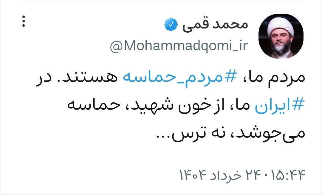۲۴ خرداد | حجت‌الاسلام قمی در صفحه شخصی خود نوشت؛