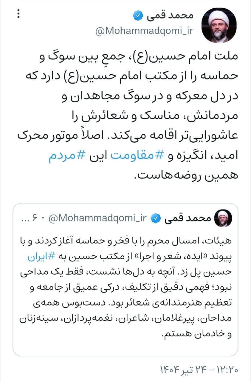 ۲۴ تیر | حجت‌الاسلام قمی در صفحه شخصی خود نوشت؛
