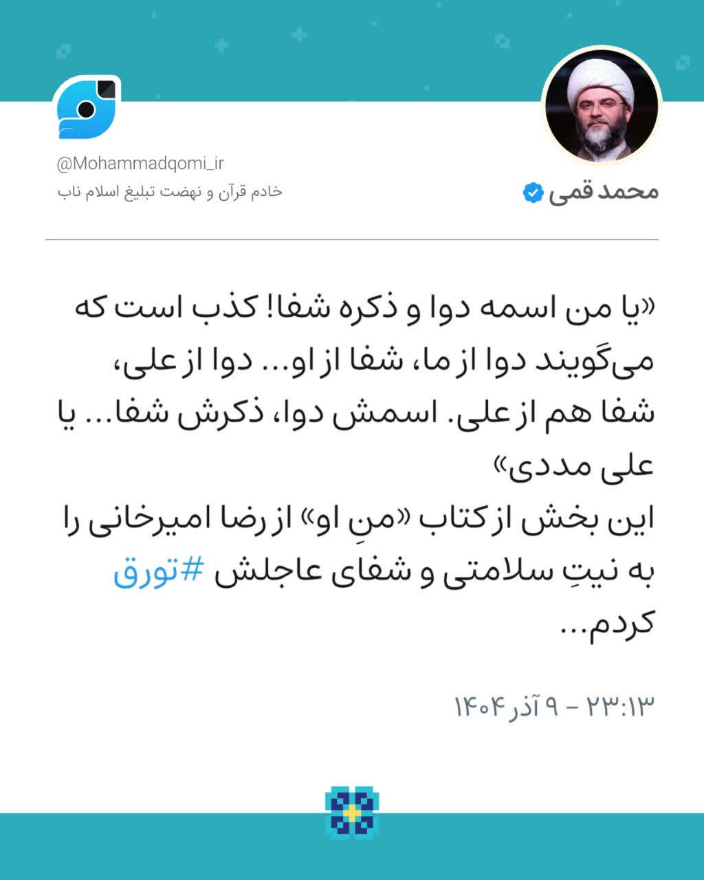 ۹ آذر | حجت‌الاسلام محمد قمی در پی انتشار خبر سانحه برای رضا امیرخانی نوشت؛