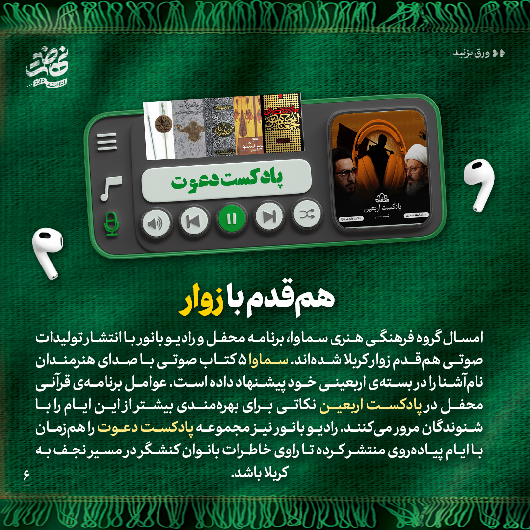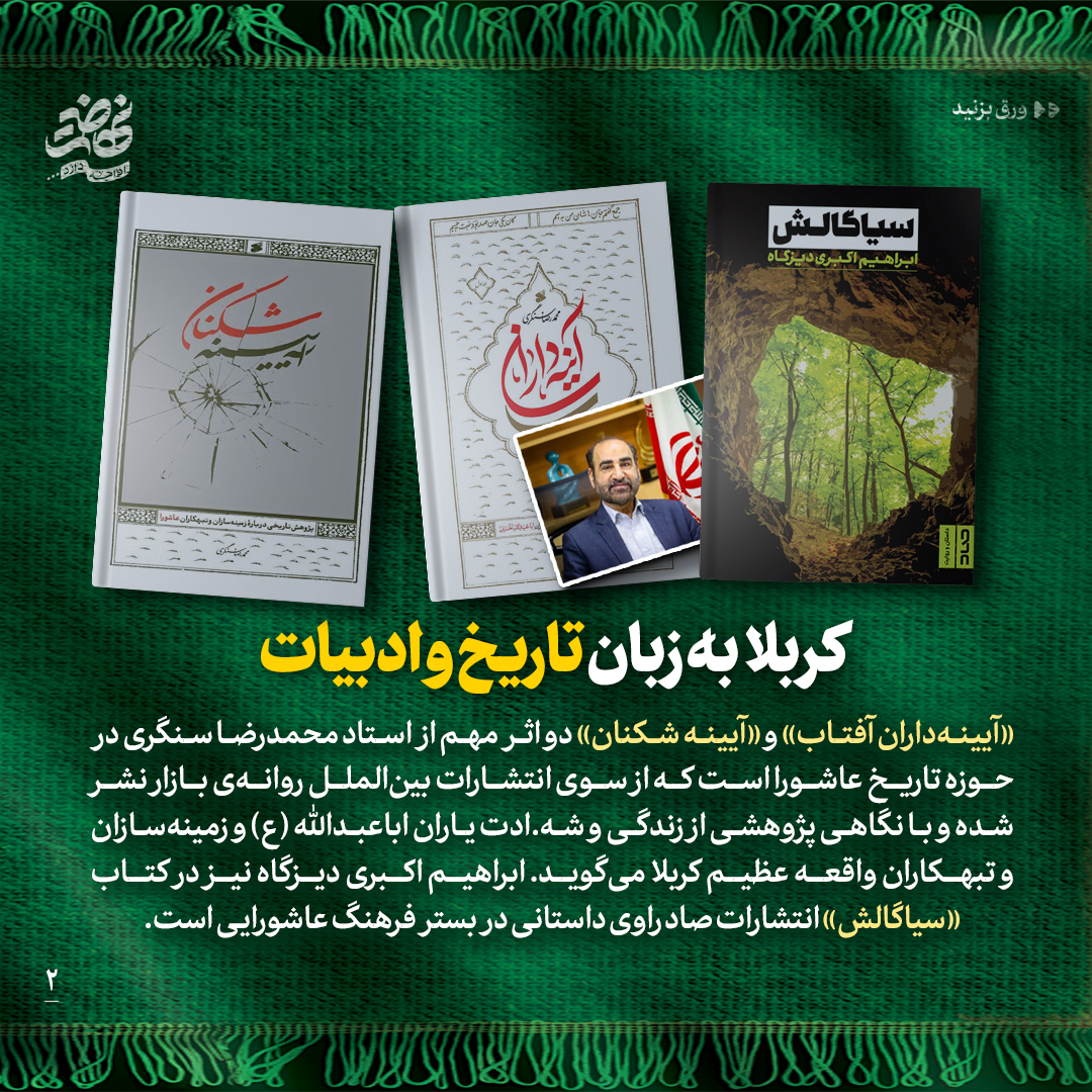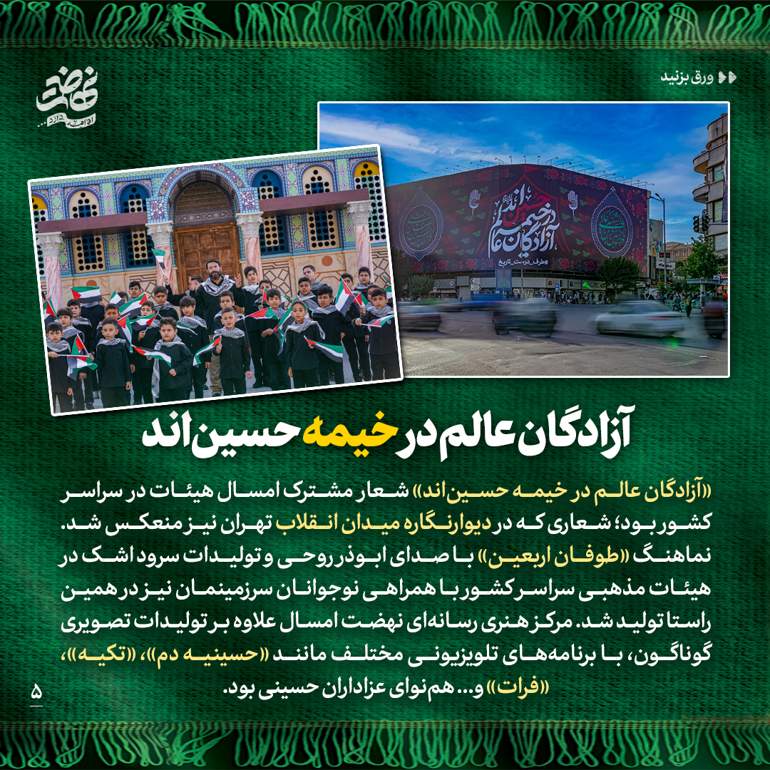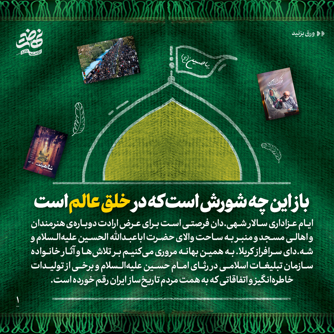 به گزارش روابط عمومی سازمان تبلیغات اسلامی، به بهانهی اربعین حسینی و اجتماع باشکوه عاشقان حضرت ثارالله در طریق الحسین، در این شماره از نشریه دیجیتال مروری میکنیم بر برخی از آثار و تلاشهای خانوادهی سازمان تبلیغات اسلامی که هریک عرض ارادتی است به ساحت والای حضرت اباعبدالله الحسین علیهالسلام به زبان هنر و رسانه.