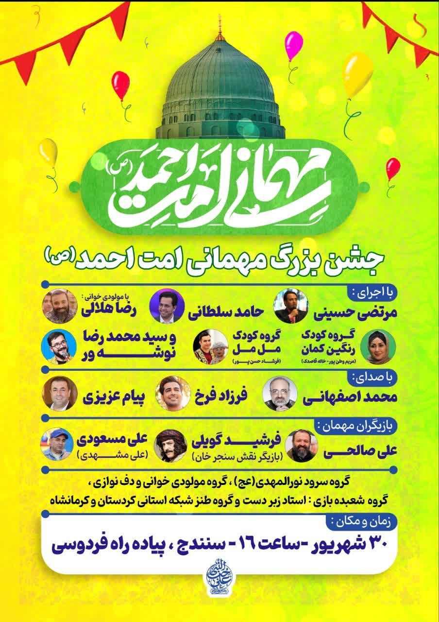 به گزارش روابط عمومی سازمان تبلیغات اسلامی، جشن بزرگ مهمونی امت احمد برای دومین سال پیاپی در سالروز میلاد پیامبر اعظم (ص) به میزبانی استان کردستان برگزار میشود.