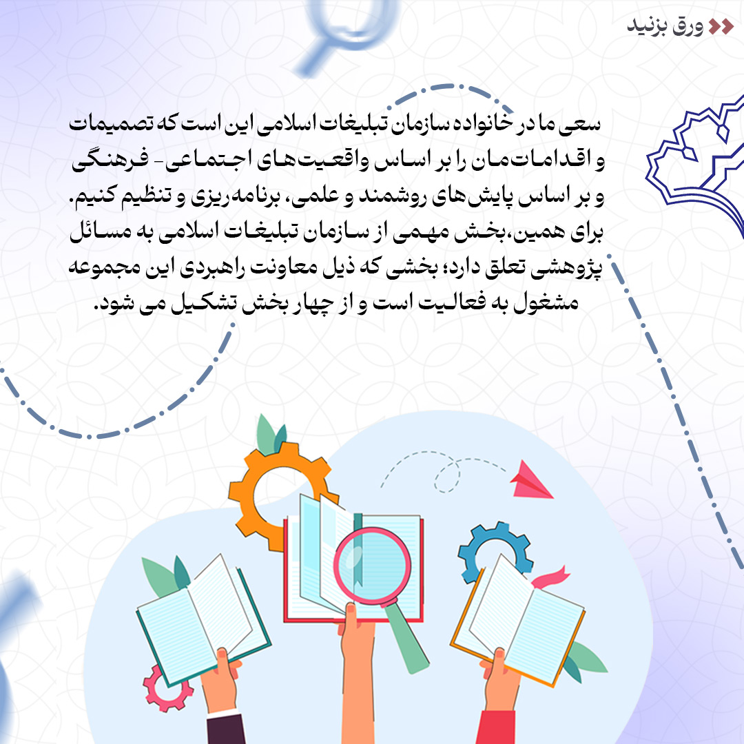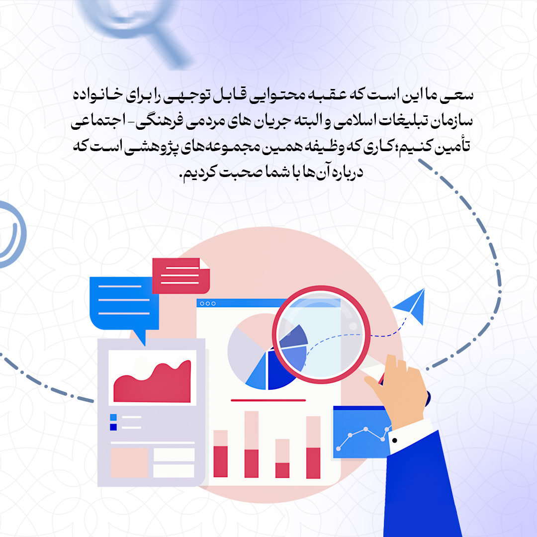 پژوهش در خانواده سازمان تبلیغات اسلامی مهم است و مراکز پژوهشی این خانواده فرهنگی در تلاش است تا در راستای افکارسنجی و تامین و ترسیم چشمانداز قدم بردارد.