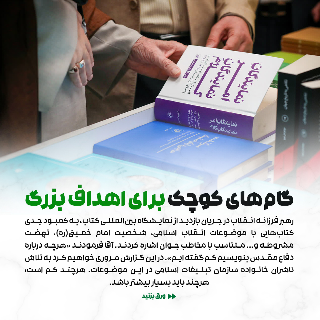 در پی بازدید رهبر معظم انقلاب از نمایشگاه کتاب تهران، در این گزارش مروری خواهیم کرد به تلاشهای خانواده سازمان تبلیغات اسلامی در موضوعاتی که ایشان به آنها اشاره کردند. هرچند کم است؛ هرچند باید بسیار بیشتر باشد.