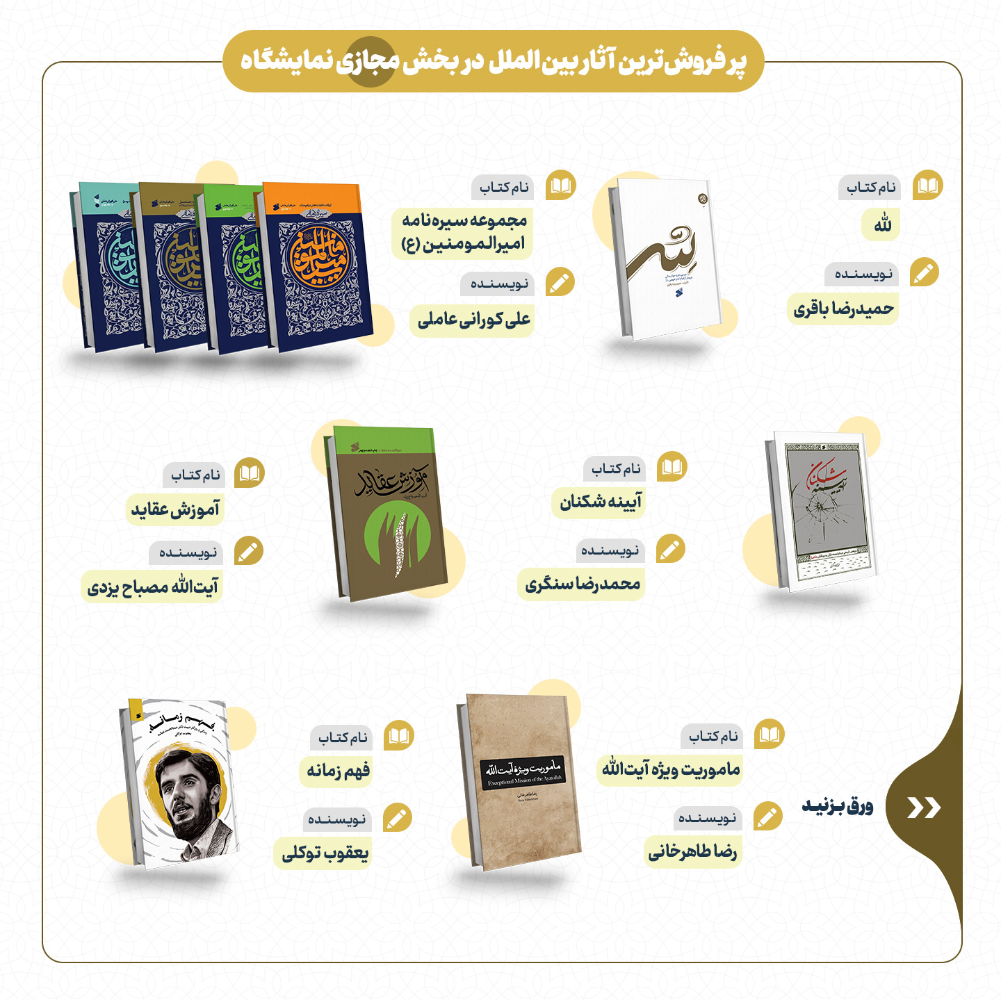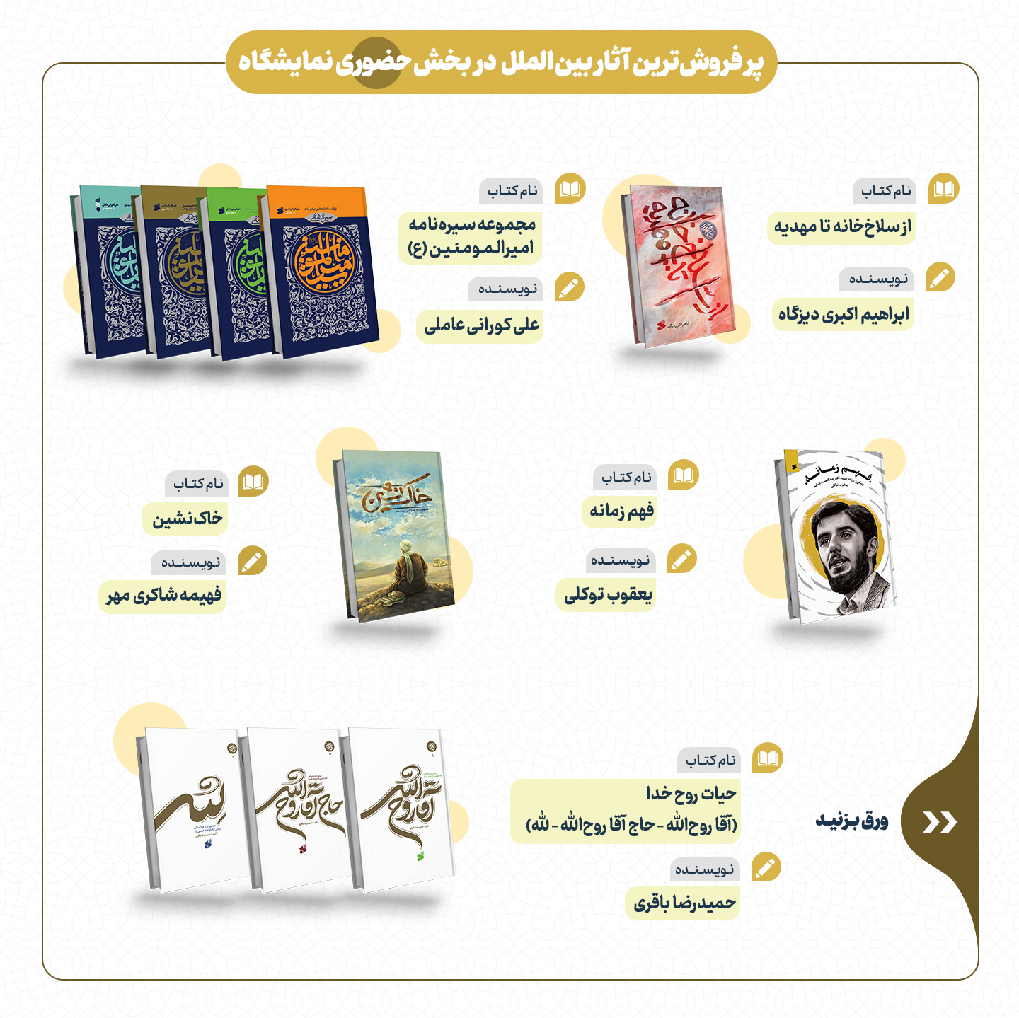 به مناسبت سیوپنجمین دوره نمایشگاه کتاب تهران در این گزارش مروری میکنیم بر پرفروشترین آثار ناشران خانواده سازمان تبلیغات اسلامی در نمایشگاه کتاب تهران.