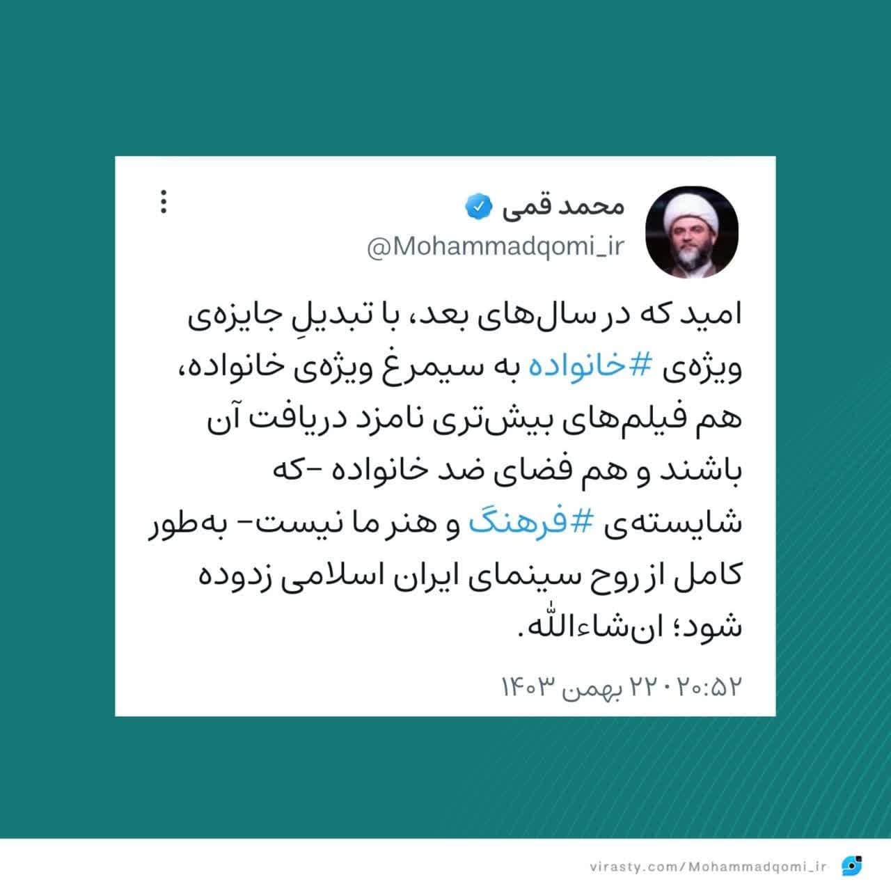 ۲۲ بهمن | حجتالاسلام قمی در صفحه شخصی خود نوشت؛