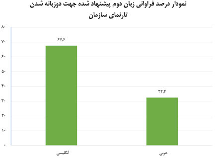 به استناد پاسخ سوال "برای دوزبانه شدن تارنمای سازمان تبلیغات اسلامی، کدام یک از زبانهای زیر را پیشنهاد میکنید؟" درصد قابل توجهی از کاربران و مخاطبین تارنمای سازمان، زبان انگلیسی را به عنوان زبان دوم جهت چند زبانه شدن تارنمای دستگاه انتخاب کردهاند که میتوان در این راستا نسبت به توسعه تارنما به زبان انگلیسی اقدامات لازم را به عمل آورد.